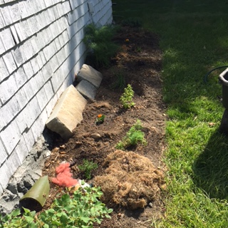 Even I don’t want wool showing in the garden so I cover it with grass clippings. Wool will protect and takes a long time to break down and I will have to replace the grass clippings before I need more wool.  We don’t lack for grass clippings on this acre. In the front of the  picture you can see the layer of wool on the left. It is covered by grass on the right. It was supposed to get hot today- to me 78 degrees feels a bit too hot- so I was out early as can be seen by the shadows.