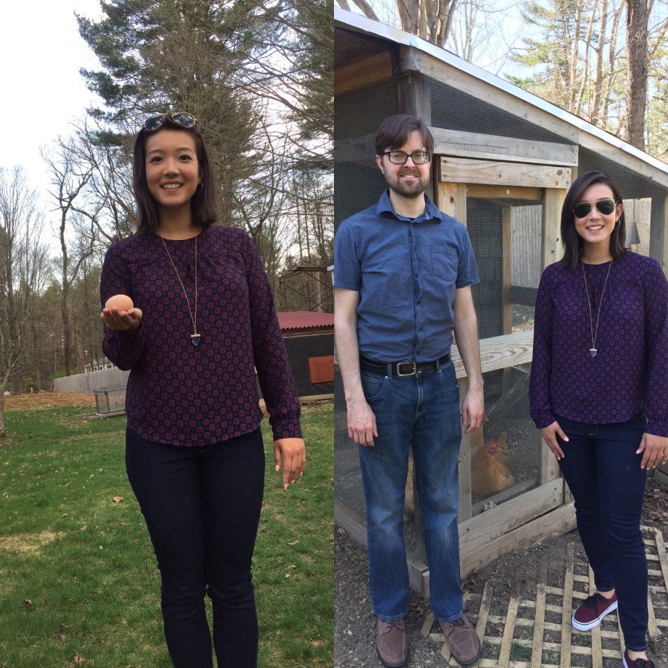 cousins with chickens