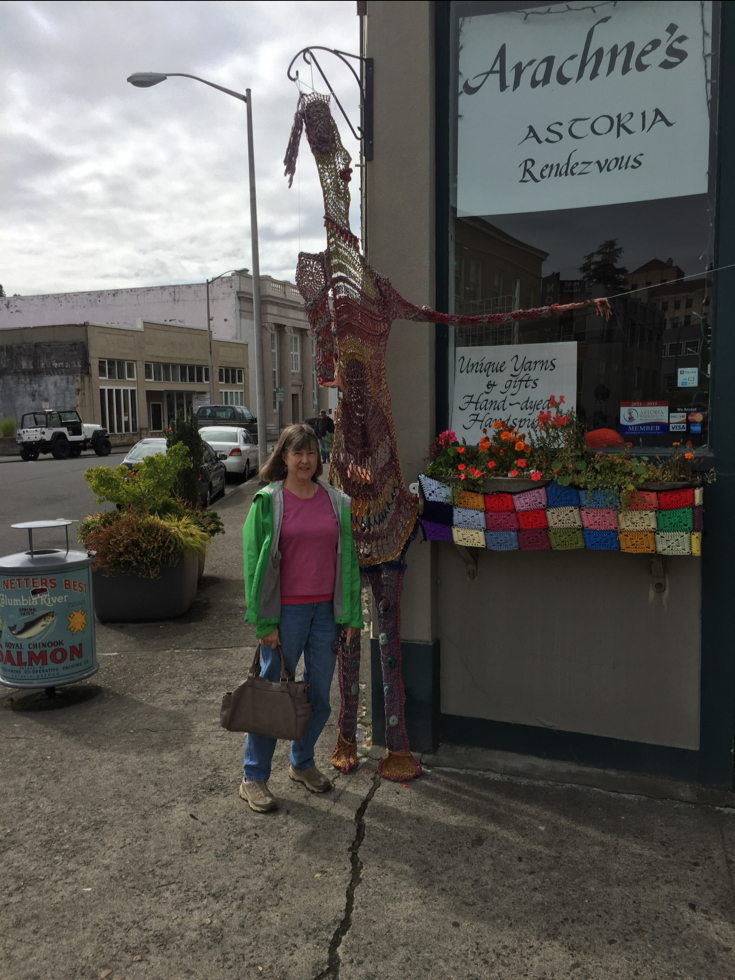 We went on a tour of 7 tiny houses. The houses always fascinate me. They are so cute and the idea of winnowing down one’s items so that there is little to clean has an appeal. Actually living that lifestyle might be another thing! Here we are standing in one of the largest ones which had a footprint of 160 square feet and a loft for sleeping with 60 square feet. The width of it is 8’ so we took this picture for perspective. I of course am under no illusions I know I would need one for living and another one for a fiber studio. I won’t winnow down that far!